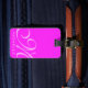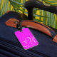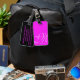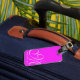 étiquette à bagages rose personnalisée avec bracelet en cuir : gros monogramme et nom