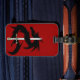 Silhouette de dragon enveloppé autour de l'épée avec poignée bijouée sur arrière - plan rouge