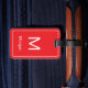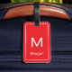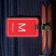Une étiquette de bagage personnalisée vous aide à récupérer le bon sac à la consigne de bagages de l'aéroport. Vous pouvez modifier le texte de cette étiquette de bagage rouge vif à l'initiale et au nom du destinataire.