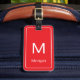 Étiquette À Bagage Simple Bright Red Blanc Monogramme & Nom Modèle