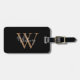Étiquette À Bagage Simple Elegant Black Gold Nom de script Monogramme