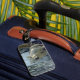 A luggage tag featuring a photo of a squirrel.
