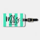 Ajoutez un style tendance à vos bagages favoris avec une étiquette à bagages rayés avec une typographie "Mrs" en gras et votre nom. L'envers contient un exemple de texte avec le nom et les coordonnées. Modifiez avec le texte souhaité. Vous pouvez changer la bande turquoise en n'importe quelle autre couleur en choisissant "customiser" et en sélectionnant une autre couleur arrière - plan.