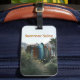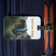 Beautiful luggage tag with leather strap and built in card for identification details, featuring Summer Suite Surfboards & Palm Trees design - inspired by our song Summer Suite.
