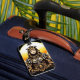 "Ce design évocateur présente une figure centrale ornée d'une tenue ornée, peut-être d'inspiration égyptienne ou moyen-orientale, sur fond de soleil stylisé, de dunes de désert et de palmiers. La figure a une expression sereine et consciente, suggérant la sagesse ou la vision mystique. La palette de couleurs est dominée par des dorures chaudes et des noirs contrastés. Cette conception est polyvalente pour des produits visant une esthétique mystique, spirituelle ou d'inspiration historique. Imaginez-le sur les accessoires de méditation, les imprimés artistiques, les vêtements de style bohème, ou l'image de marque pour des services holistiques."