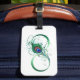 Le symbole de l'infinity with a bright, green, artistic peacock feather on a white background. Tattoo style.