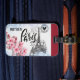 Vous n'aurez aucun mal à trouver vos bagages en utilisant ces jolies étiquettes de bagages qui comprennent la Tour Eiffel, les Fleurs de cerisiers, et la phrase Rencontrez-moi à Paris. Un timbre-poste simulé indique "fait avec amour" et il y a une jolie bordure rouge sur le dessus.