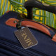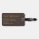 Marque de bagage avec nom et adresse avec un bronzage "MINE" sur une couleur arrière - plan brune. Personnalisez avec votre nom et vos informations d'adresse en utilisant les modèles faciles.
