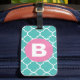 Étiquette À Bagage Teal Quatrefoil Pattern Custom Pink Monogram