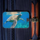 Photo sous-marine d'une tortue de mer nageant dans une eau cristalline juste en dessous de la surface.