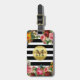 Étiquette À Bagage Trendy Monogram Stripes Rose Fleurs Parties scinti