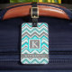 Étiquette À Bagage Turquoise bleu gris vert blanc Motif Chevron