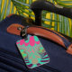 Cette étiquette de bagage fractale colorée a des couleurs vives et vives comme turquoise et rose. Ces étiquettes de bagages sont parfaites pour vos bagages de voyage. Vous pouvez choisir entre une étiquette à bagages design double face ou une étiquette à un côté avec emplacement de carte pour vos informations.