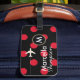 Design simple et design rouge/noir pour identifier ses effets personnels. Pois avec un petit avion... pour ajouter le nom du voyageur et l'initiale
