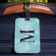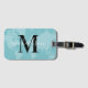 Voyagez dans le monde en beauté ! Cette étiquette à bagages élégante et moderne comprend une carte bleu/vert aqua de l'arrière - plan du monde avec monogramme personnalisé noir et blanc qui peut être personnalisée avec votre prénom ou votre nom de famille et votre lettre initiale.
