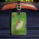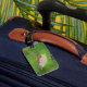Un dessin au crayon de couleur d'un peu de tissé orne cette étiquette à bagages personnalisable!