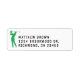 Cette étiquette d'adresse personnalisée comporte l'image d'un golfeur vert, ajoutant une touche sportive à vos envois. Parfaite pour les amateurs de golf, c'est une façon amusante et unique de personnaliser vos enveloppes ou colis. Idéal pour le marié ou tout golfeur, cette étiquette ajoute une touche de personnalité à toute correspondance.