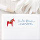 Étiquette d'adresse de retour avec un cheval Dala rouge. Les chevaux de Dala sont des chevaux traditionnels en bois, sculptés et peints de la province suédoise de dalarna. Nom et adresse personnalisables. Idéal si vous souhaitez montrer votre descendance suédoise ou scandinave.