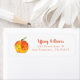 Jolie étiquette d'adresse de retour avec une illustration d'un fruit de pêche avec un doux sourire sur son visage. Ce étiquette a été conçu pour un doux comme un baby shower à thème pêche.