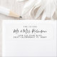 Élégantes étiquettes d'adresse de retour de mariage à la mode avec écriture manuscrite. Caractérisé par un joli modèle de nom de famille de mariée et de marié écrit à la main comme M. et Mme en noir et blanc. Facile à personnaliser avec vos noms et informations d'adresse de retour.