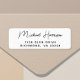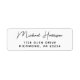 Étiquette blanche d'adresse de retour avec votre nom dans un script moderne et design pour votre correspondance personnelle, d'affaires ou d'événement spécial.
