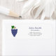Une étiquette d'adresse de retour avec illustration de raisins et coordonnées en gris et violet pour un vigneron, cave à vin, vignoble, etc.