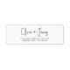 Étiquette d'adresse de retour moderne pour vos annonces de fiançailles, enregistrer les dates, invitations de mariage, cartes de remerciements et correspondance de mariée avec vos prénoms dans un script chic et votre adresse dans la typographie serif classique.
