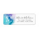 Élégantes étiquettes d'adresse de retour avec votre premier monogramme sur un arrière - plan d'aquarelle violet et bleu aqua. Champs modèles pour nom et adresse.