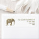 Étiquette simple, moderne, élégante, blanche d'adresse de retour avec monogramme et éléphant d'or, symbole de : amour, fertilité et bonne chance.