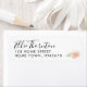 Un nom de script à thème chic et l'étiquette d'adresse de retour avec votre nom dans une police de script au-dessus de vos détails d'adresse en texte classique avec un joli rose de pêche.