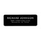 Élégantes étiquettes d'adresse de retour avec champs modèles pour votre nom et adresse. Texte blanc sur un arrière - plan noir.