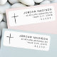 Des étiquettes d'adresse de retour modernes et blanches avec votre nom et adresse dans une police sans serif moderne, et une croix chrétienne simple et élégante. Vous pouvez modifier la couleur de l'arrière - plan et de la police en une couleur personnalisée à l'aide de l'outil de personnalisation.