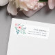 D'élégantes étiquettes d'adresses de retour florales comportent un spray de fleurs d'aquarelle rose et de feuilles verts sauge le long du côté gauche. Personnalisez avec votre adresse de retour en ardoise en lettres bleu-gris.