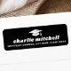 Étiquettes d'adresse de retour de graduation en couleur noir ou personnalisé avec une casquette de graduation avec votre nom ci-dessous dans une police de style rétro en gras. Texte en couleur blanc ou personnalisé sur un arrière - plan en couleur noir ou personnalisé.