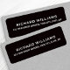 Étiquettes d'adresse de retour en noir contenant des champs modèles pour votre nom et adresse. Texte blanc.
