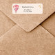 Arrière - plan couleur pêche décoré d'une montgolfière rose. Personnalisez et ajoutez votre nom et votre adresse. Lettres noires.