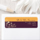 Moderne, élégante, tons de bijoux jaunes et violets prune adresse de retour de mariage étiquette avec dentelle florale dorée et calligraphie moderne.