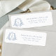 Ces étiquettes d'adresse de retour Blue Traditional Monogram Crest Floral Elegant Wedding présentent une élégante crête de monogramme botanique vintage avec des vignes délicates et des accents floraux.