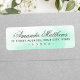 Élégantes étiquettes d'adresse de retour avec votre nom dans une police de script de calligraphie romantique avec l'adresse ci-dessous sur un arrière - plan d'aquarelle vert menthe