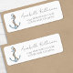 Étiquette de l'adresse de retour de l'Ancre nautique. Cette charmante étiquette d'adresse de retour comporte une simple ancre bleue avec une corde tan enroulée autour de celle-ci sur le côté gauche. Un script délicat écrit à la main pair avec une police serif propre en gris doux, créant un look élégant et polyvalent. Idéal pour les invitations à des douches pour bébés, les fêtes d'anniversaire ou toute célébration sur le thème nautique, il ajoute une douce touche côtière à tous ceux qui aiment la mer. Tous les textes, polices et couleurs sont personnalisables pour correspondre à votre style.