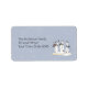 Un étiquette de vacances avec trois mignons anges de neige sur un arrière - plan bleu avec des flocons de neige. créé avec graphisme by©http://www.countrylifegraphics.com