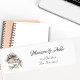 Cette étiquette d'adresse de retour d'aquarelle présente une illustration de la faune boisée d'une belle chouette enneigée en vol, d'une pleine lune et d'une branche à feuillage persistant. Personnalisé avec votre nom en texte de script élégant, vous aimerez ce design d'art moderne et nature.