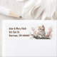 Étiquette Aquarelle Kitten Avec Fleurs Roses
