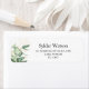 Aquarelle Moderne Eucalyptus Verdure avec quelques feuilles d'or retour étiquette d'adresse accompagnée d'un nom et adresse personnalisable en lettres élégantes sur un arrière - plan blanc.