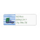 Blue Truck Return Address Label contient des graphiques inspirés de Little Blue Truck avec un arrière - plan rayé bleu et blanc.