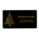 Il s'agit d'Arbre d'or de Noël avec la conception de l'étiquette d'adresse de retour de l'Arrière - plan noir. Cette caractéristique de design est une police manuscrite dorée avec des accents de cadre de défilement sur un arrière - plan de Parties scintillant Blanche avec un look rustique texturé. Texte d'adresse de retour personnalisé. Étiquettes de adresse personnalisés pour tous vos envois.