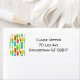 Ces étiquettes d'adresses de retour ont un design moderne du milieu du siècle de longs ovales en jaune, orange, vert et turquoise avec des lignes noires avec des cercles sur les extrémités.
