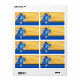 Large Self-Stick to/from étiquette présente la peinture numérique originale de Jewbilee d'un Vitrail Art Déco Star of David dans différentes nuances de bleu royal flottant au-dessus d'un arrière - plan à 3 couches de vagues jaunes profondes, argent sur clé grecque noire, et bandes horizontales bleu royal.