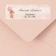 Une mignonne fille en peluche tenant un ballon rose sur un arrière - plan d'or rose rose roux rustique. Personnalisez et ajoutez votre nom et votre adresse. Parfait pour les invitations à la douche bébé et les cartes de remerciement.
