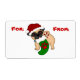 Ce étiquette d'étiquette-cadeau de vacances présente un mignon chiot en carlin noir et brun portant un casquette du Père Noël rouge et portant un bas vert dans sa bouche. Le bas a un empreinte de patte rouge dessus. De chaque côté de l'image est une zone pour écrire qui le cadeau est pour et de qui il est. N'importe qui qui aime les carlins va adorer ce étiquette de tag cadeau!